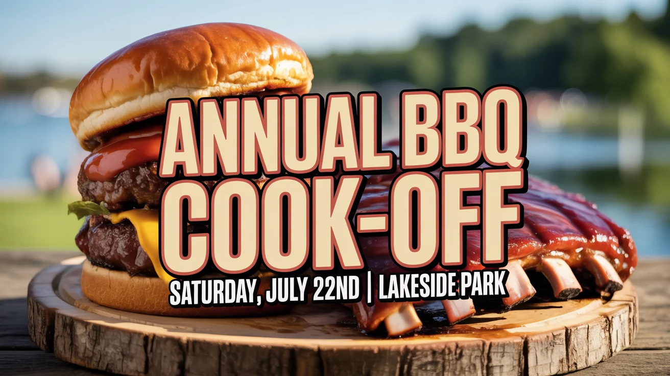 For the best results, be descriptive. Include the name of your event (e.g., 'Annual Family Cookout'), any text you want on the banner ('All You Can Eat Ribs'), dates, and specific visuals like 'a smoking grill,' 'a cartoon pig wearing a chef hat,' or 'a rustic wood background'.