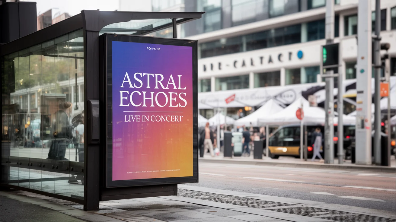 A bus stop poster mockup generator is an online tool that allows you to place your poster design into a photorealistic image of a bus stop. It's used to show how an advertisement will look in a real-world environment without having to physically print and install it.