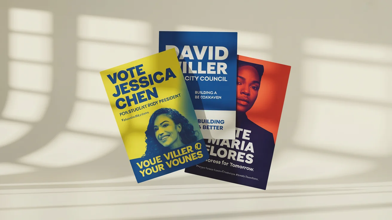A good campaign poster typically features a clear, high-quality photo of the candidate, a short and memorable slogan, the candidate's name, and the office they are running for. Using bold colors and a clean layout helps it stand out.