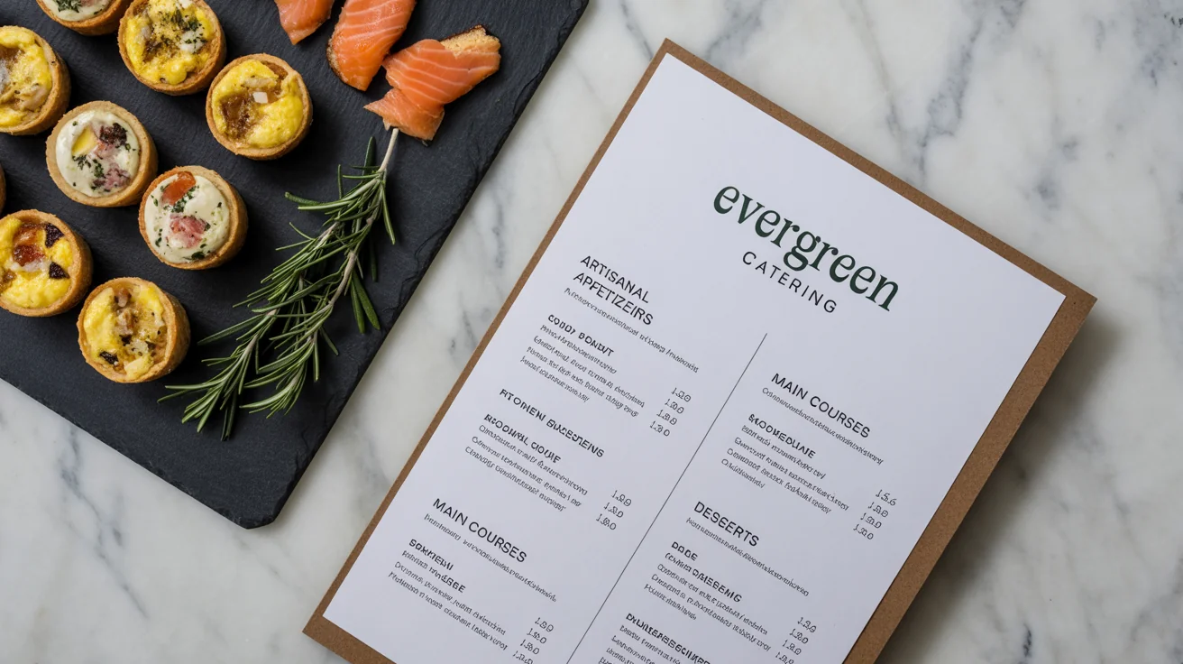 A good catering menu should be organized into clear sections like appetizers, main courses, sides, and desserts. It's also helpful to include options for common dietary restrictions such as vegetarian, vegan, and gluten-free to accommodate all guests.
