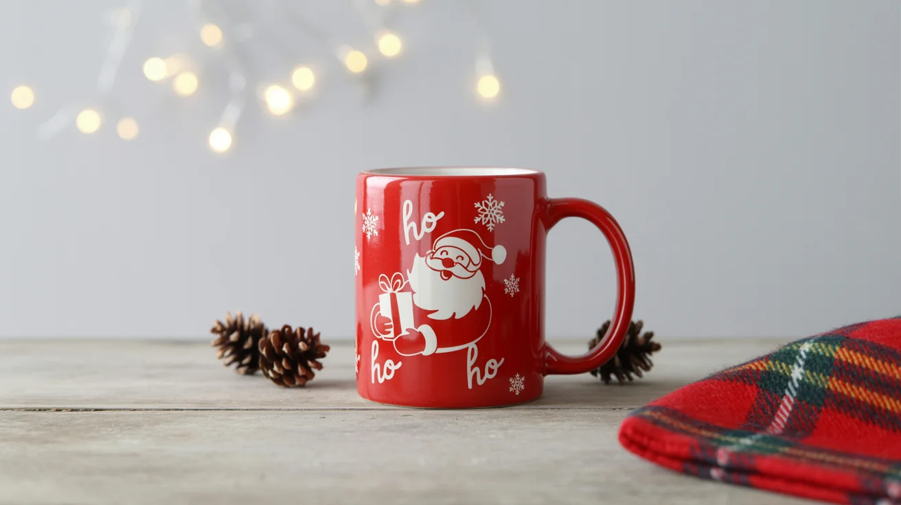 An AI Christmas mug mockup generator is an online tool that allows you to place your own design onto a photorealistic image of a mug in a festive setting. You simply upload your artwork and the AI creates a high-quality product photo for you.