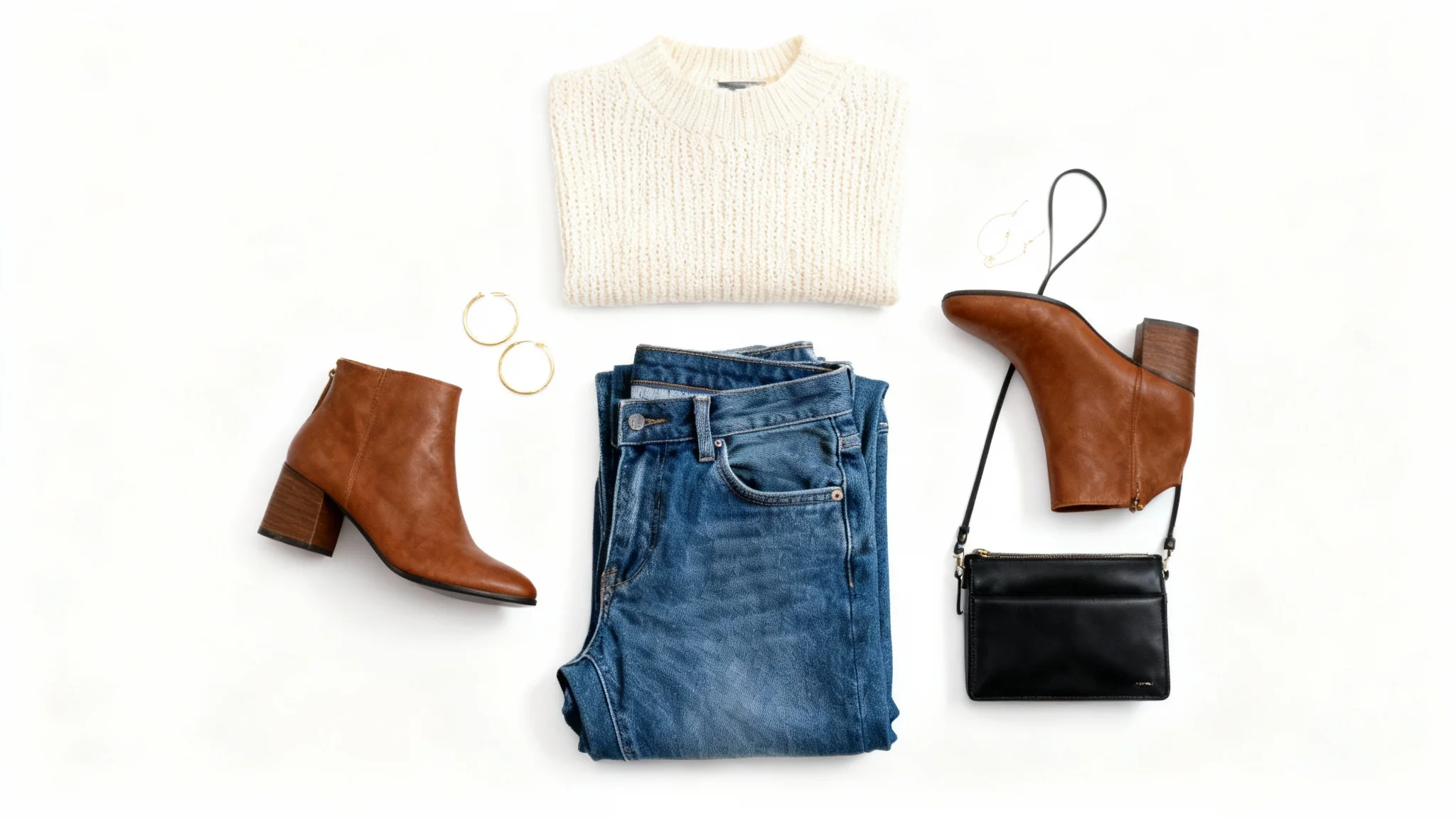 Uploading an image is optional. You can simply describe the clothes in your prompt and AI will generate generic items. However, if you have a specific garment (like your favorite jeans), uploading it ensures the exact item appears in the flat lay. The AI will then arrange that photo within the styled layout.