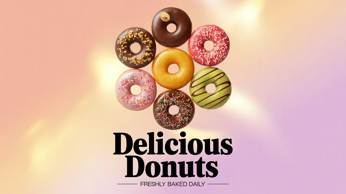 For the best poster, be as descriptive as possible. Include the types of donuts, such as glazed, jelly-filled, or frosted. Mention toppings like sprinkles or fruit, the color scheme, the background style, and any text you want on the poster, like your shop's name or a promotion.