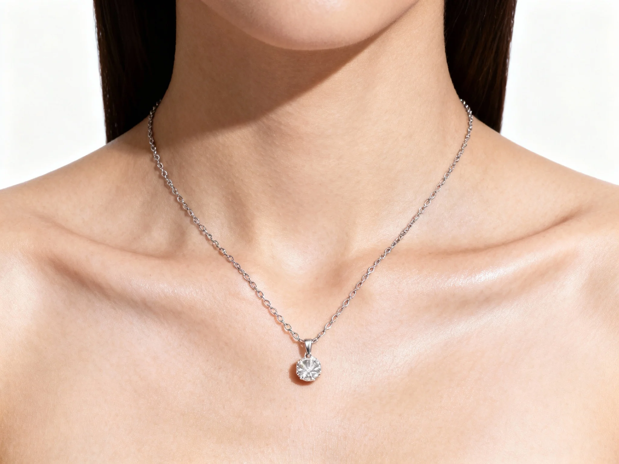 A jewelry neck model mockup generator is an AI-powered tool that creates images of your jewelry being worn by a model. You provide a description of your necklace (and optionally upload an image of your design), and the AI generates a realistic photo of a model wearing it. This lets you visualize your jewelry in a real-world context without needing an actual photoshoot.