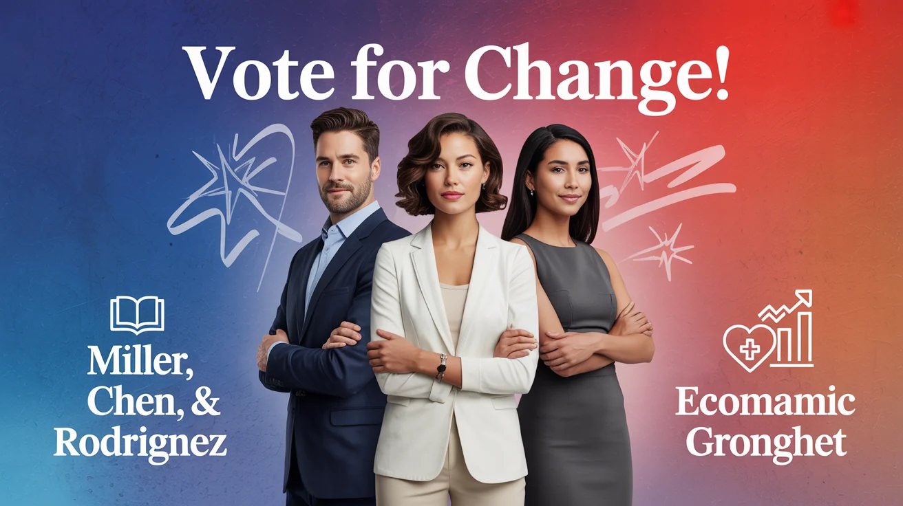 For the best results, include the exact text you want on the banner, such as 'Vote for ' and your campaign slogan. Describe the desired color scheme (e.g., 'red, white, and blue'), imagery (e.g., 'a photo of the candidate smiling'), and any specific icons or symbols you want to include.