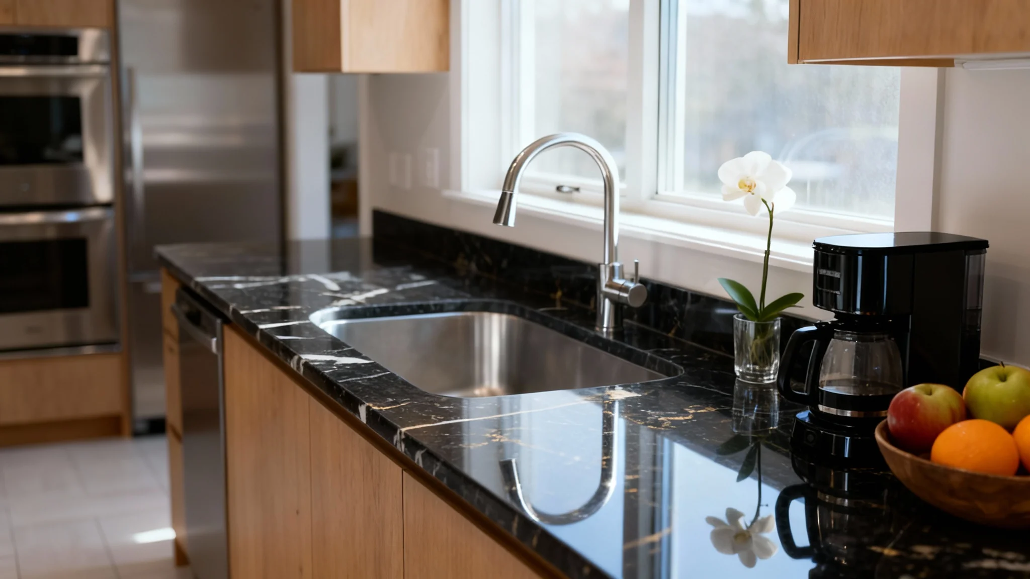 Click the generate button and our AI will replace the countertop in your photo with the new style you described, giving you a realistic preview.