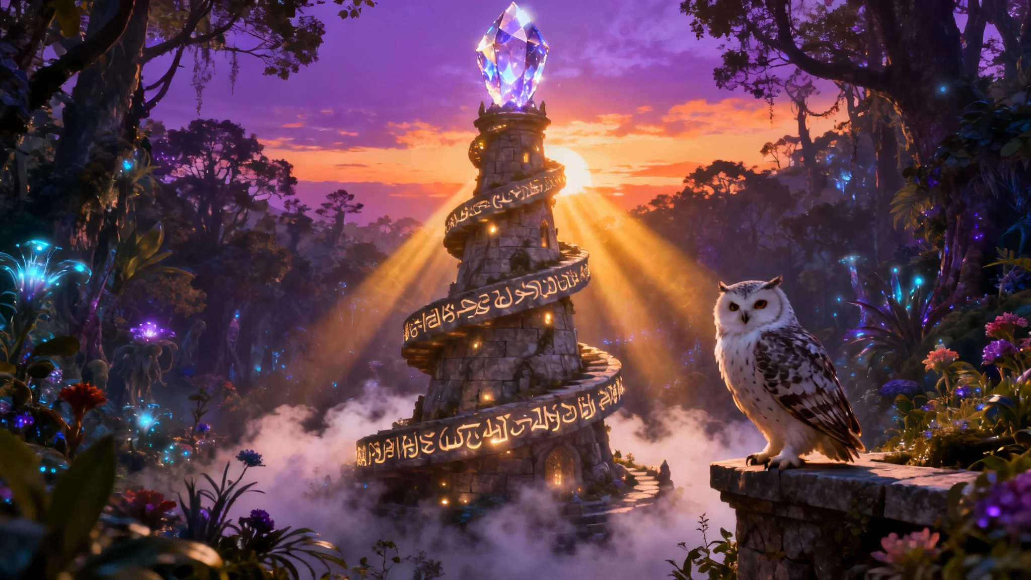 You can include a wide range of details. Think about architecture (spiraling, blocky, organic), materials (stone, crystal, wood, metal), environment (forest, mountain, floating island, underwater), lighting (sunset, moonlight, magical glow), and decorative elements (runes, gargoyles, banners).