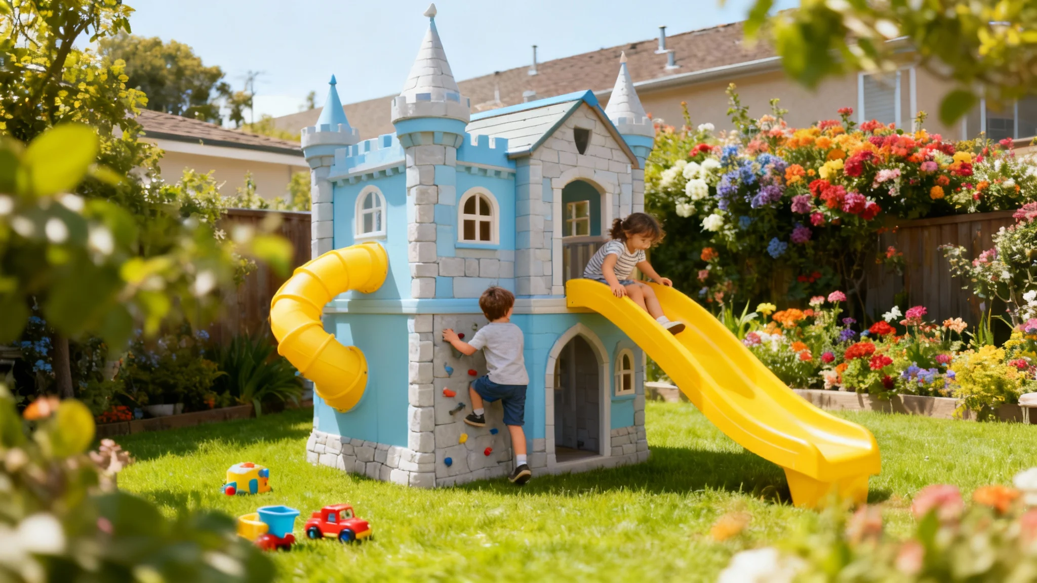 Simply upload a clear photo of your backyard where you imagine the playhouse will go. Then, in the text box, describe the wooden playhouse you want to see, including details like the style, slide color, and any other features. Our AI will then generate an image showing that playhouse in your yard.